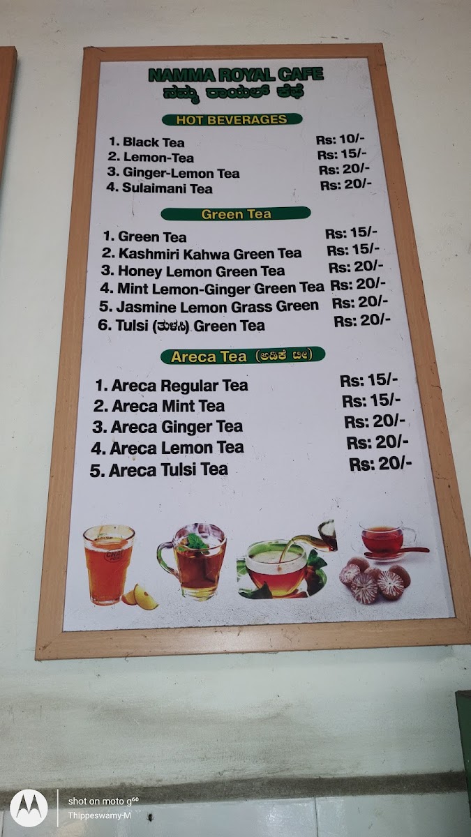 NAMMA ROYAL CAFE is a charming little gem nestled on Bandihatti Rd in the bustling Cowl Bazaar of Ballari, Karnataka. While it may be small in size, it certainly makes up for it with an impressive array of teas and a warm, inviting atmosphere that beckons both locals and visitors alike.